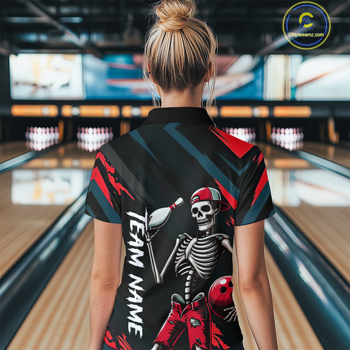 Custom Red Skull Bowling Team Shirt for Women Polo & 1/4 Zip Bowling League Jersey Bowling Gift QZT794