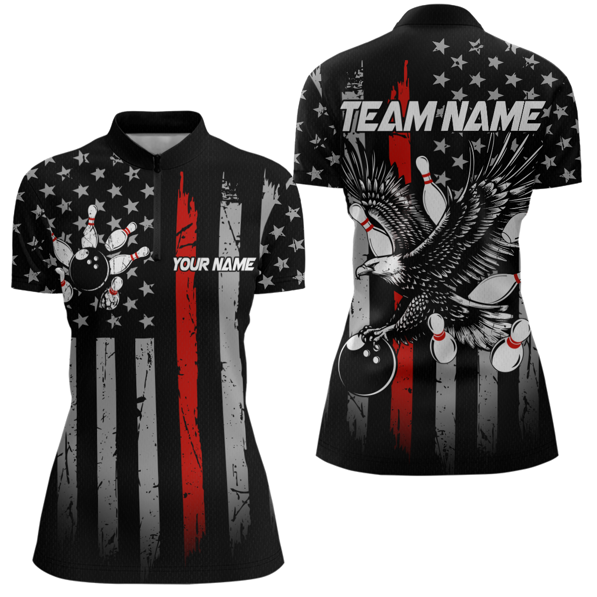 Custom Red US Flag Eagle Bowling Jersey for Women Bowling Uniform Polo & 1/4 Zip Bowling Team Shirts HNT119