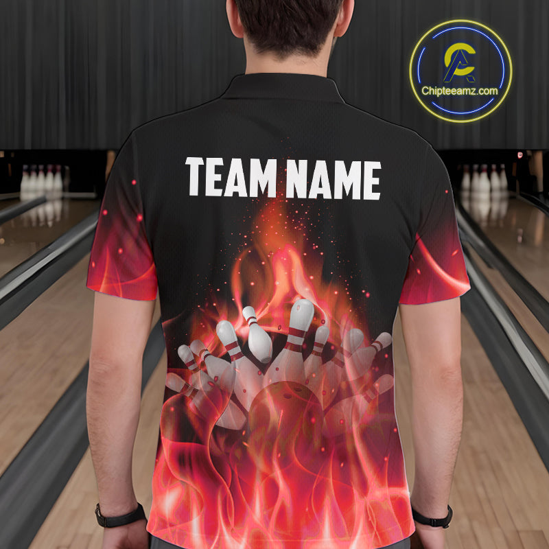 Personalized Mens Bowling Shirt Red flame Bowling Ball and Pins Team bowling jerseys for men Bowler NQS10473