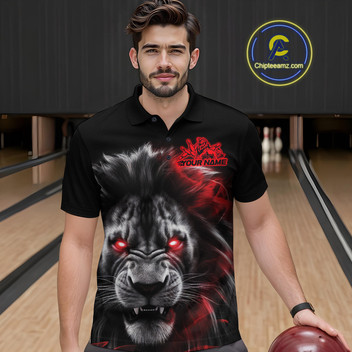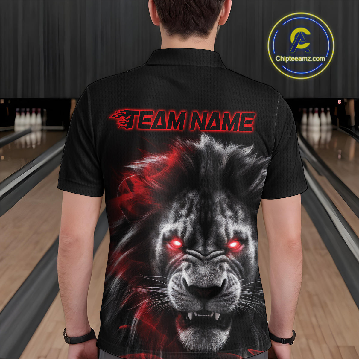 Custom Black And Red Lion Bowling Polo Team Shirts For Men, Lion Bowling Jerseys IPHW9328