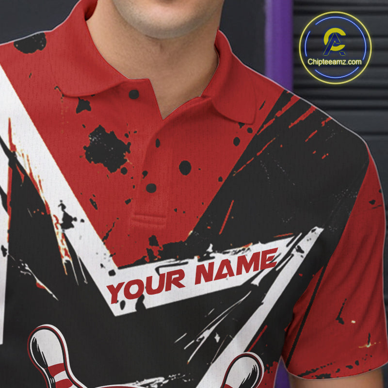 Custom Black And Red Star Funny Bowling Polo Shirts For Men, Bowling Tournament Shirt IPHW9358