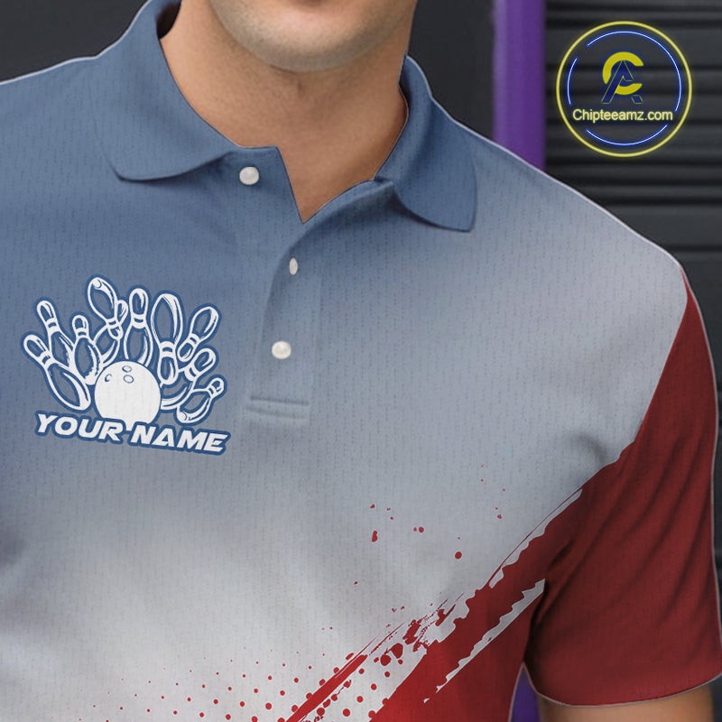 Custom Red, White And Blue Patriotic Bowling Polo Shirts For Men, Bowling League Shirt IPHW9544
