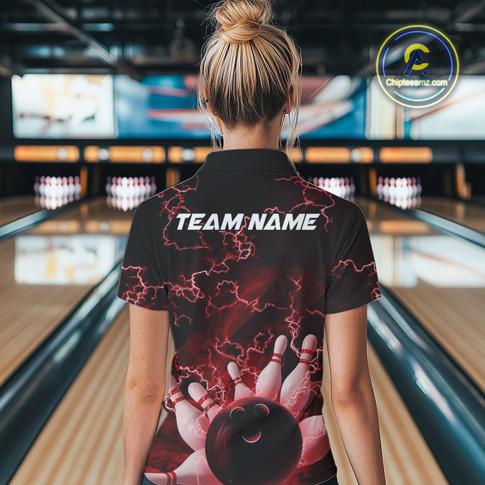Custom Red Thunder Lightning Women Bowling Polo Team Shirts, Bowling Jerseys IPHW9505