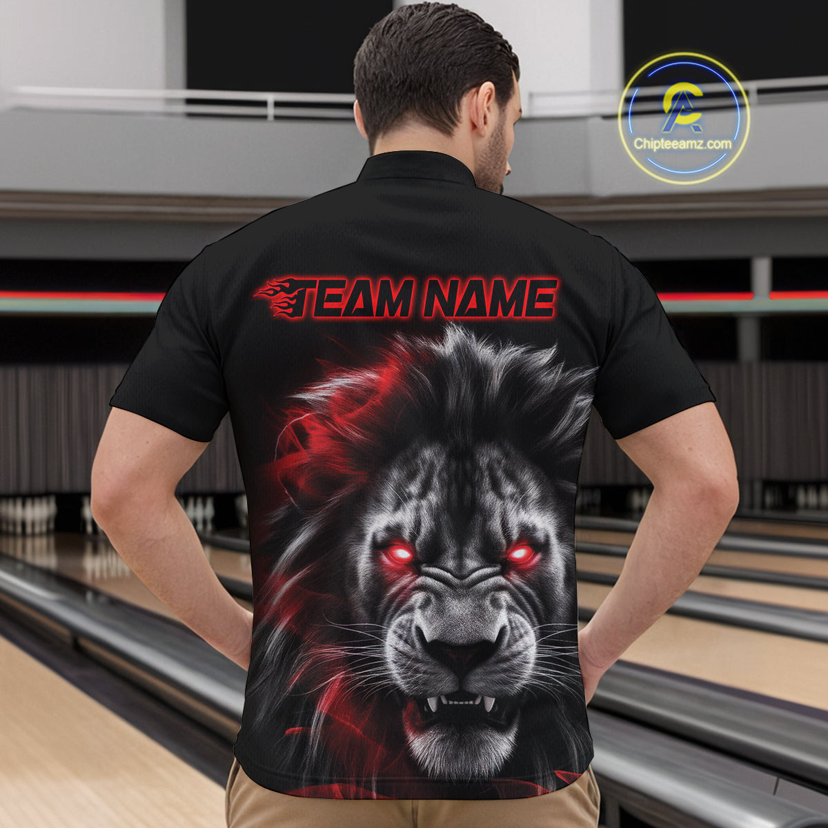 Custom Black And Red Lion Bowling Quarter-Zip Team Shirts For Men, Lion Bowling Jerseys IPHW9328
