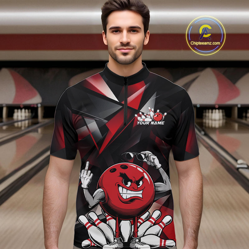 Black And Red Custom Funny Bowling Team Quarter-Zip Shirts For Men, Bowling Jerseys IPHW9356
