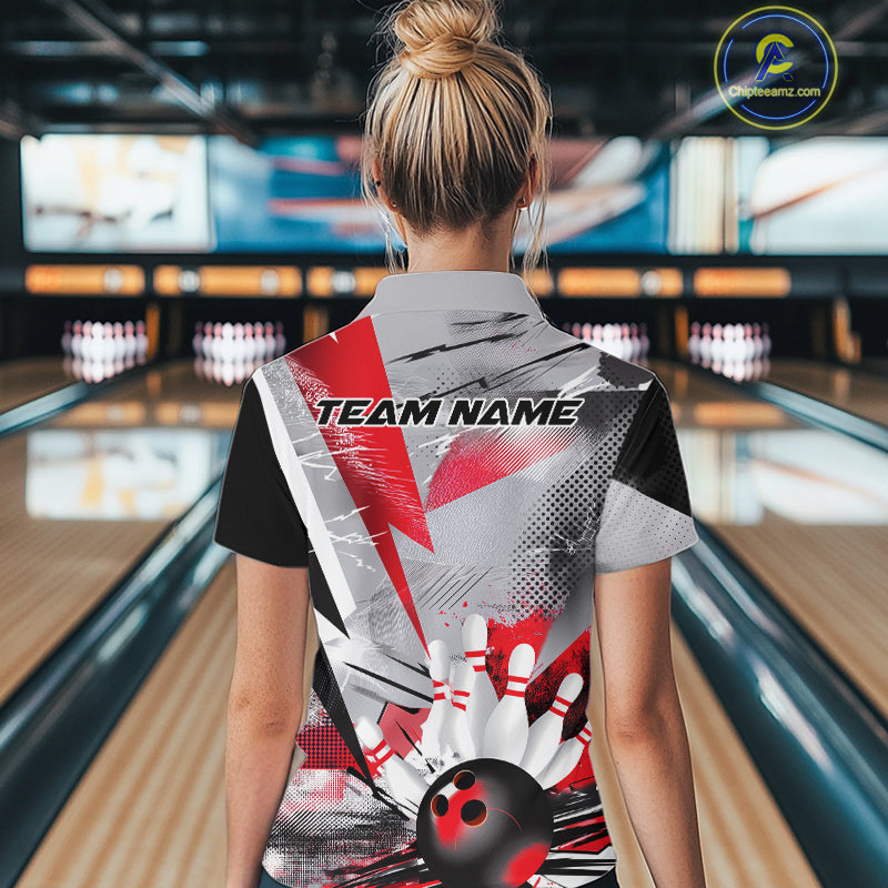 Custom Red And Gray Geometric Bowling Jerseys Bowling Team Quarter-Zip Shirts For Women IPHW9508