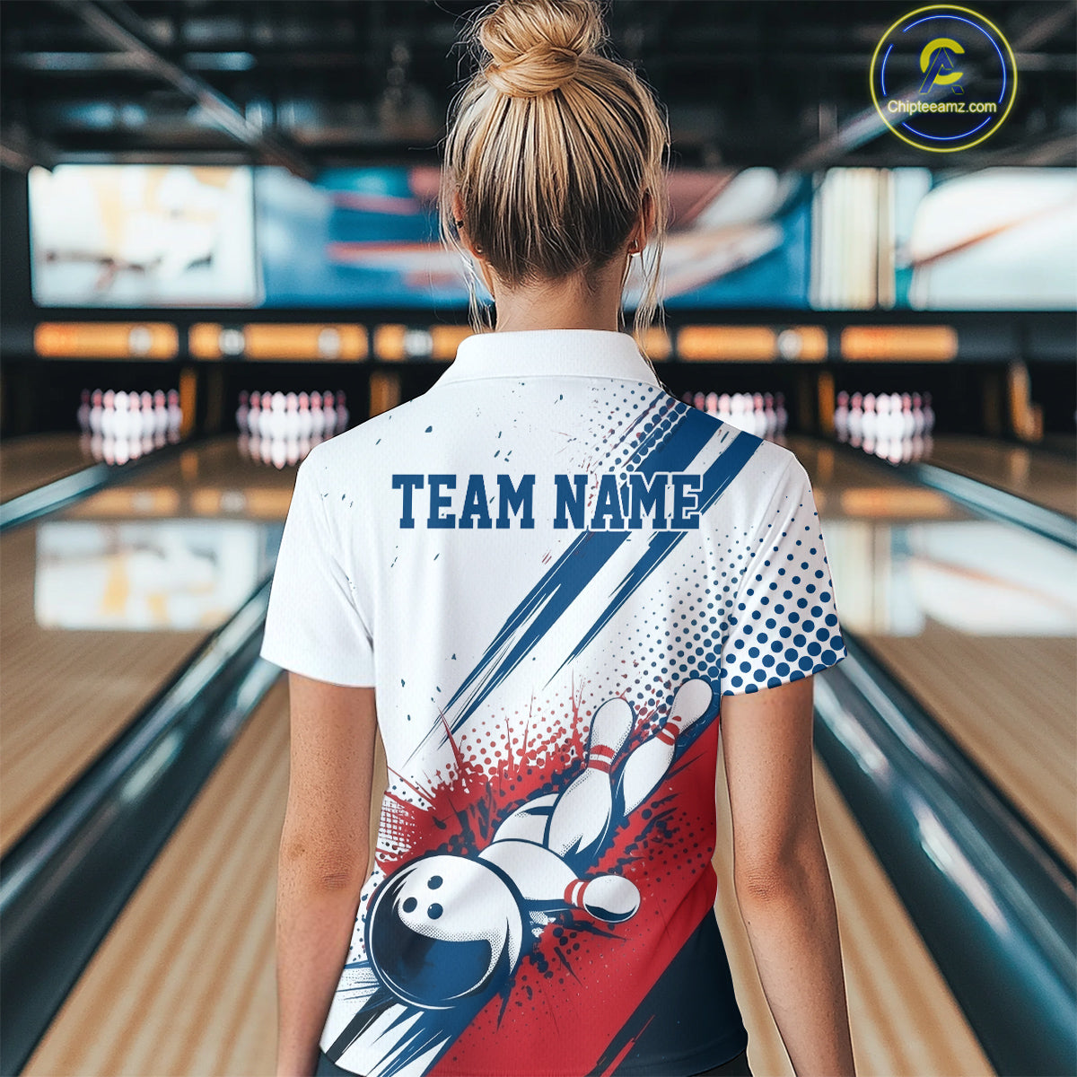 Custom Red, White And Blue Patriotic US Flag Bowling Women Quarter-Zip Team Shirt Uniform IPHW9542
