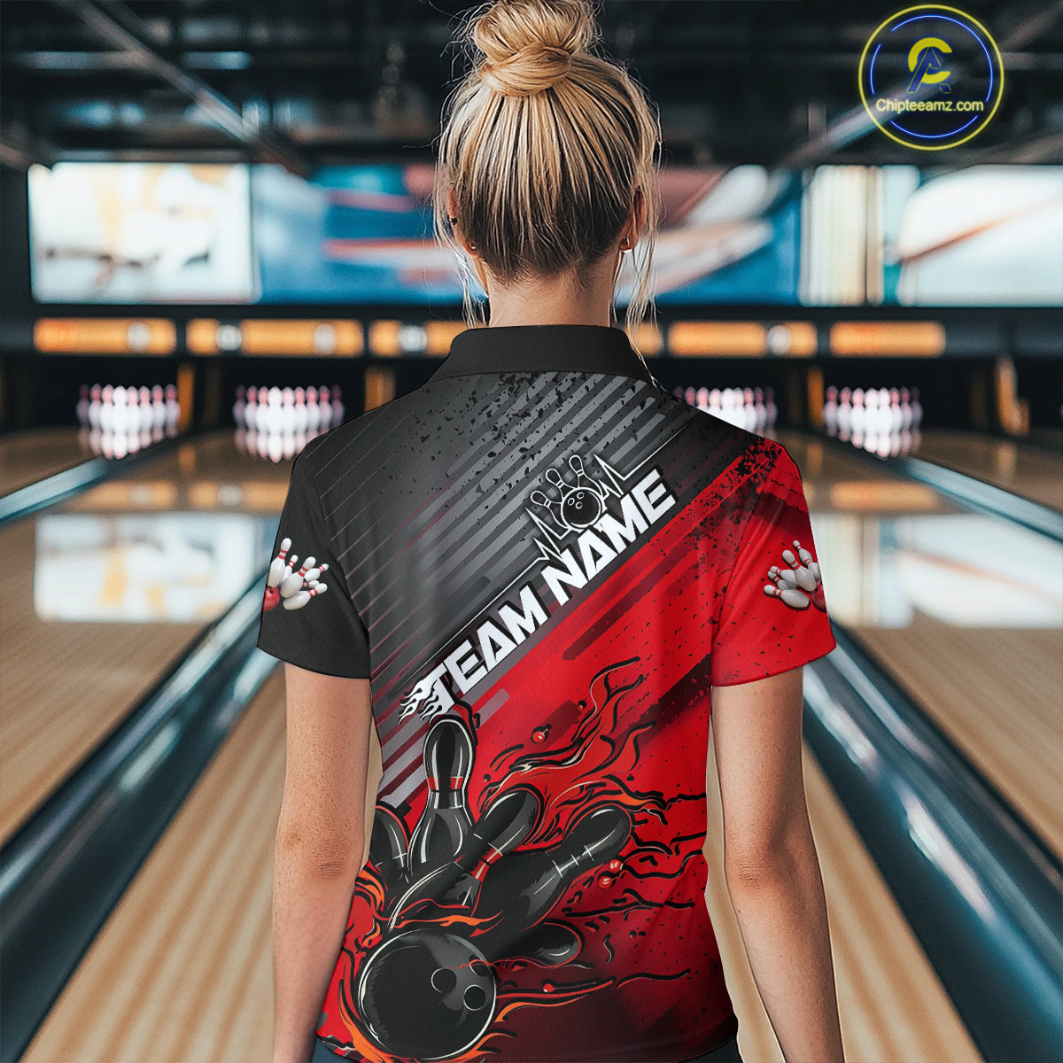 Custom Red Strike Flame Bowling Women Quarter Zip Shirt, Bowling Team Shirt Bowler Outift IPHW9615