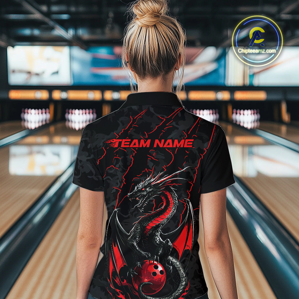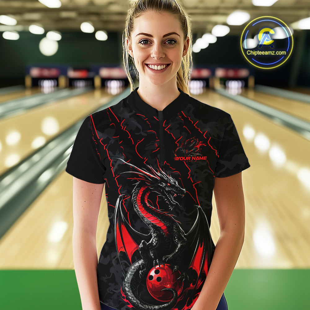 Custom Gray And Red Camo Dragon Claws Bowling Women Quarter-Zip Shirts, Team Jerseys IPHW9855