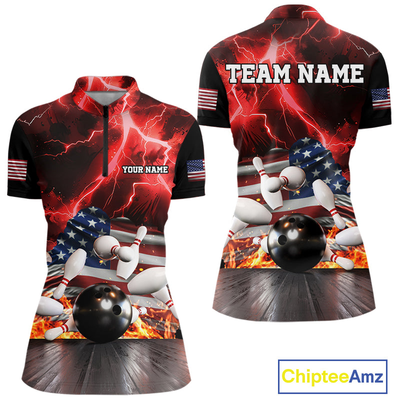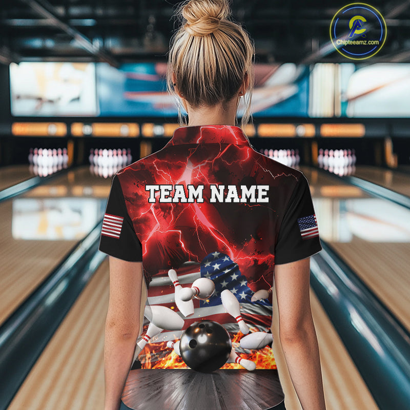 Red Lightning thunder storm American Flag Bowling Shirts For Women Custom Bowling Team League Jerseys NQS10290