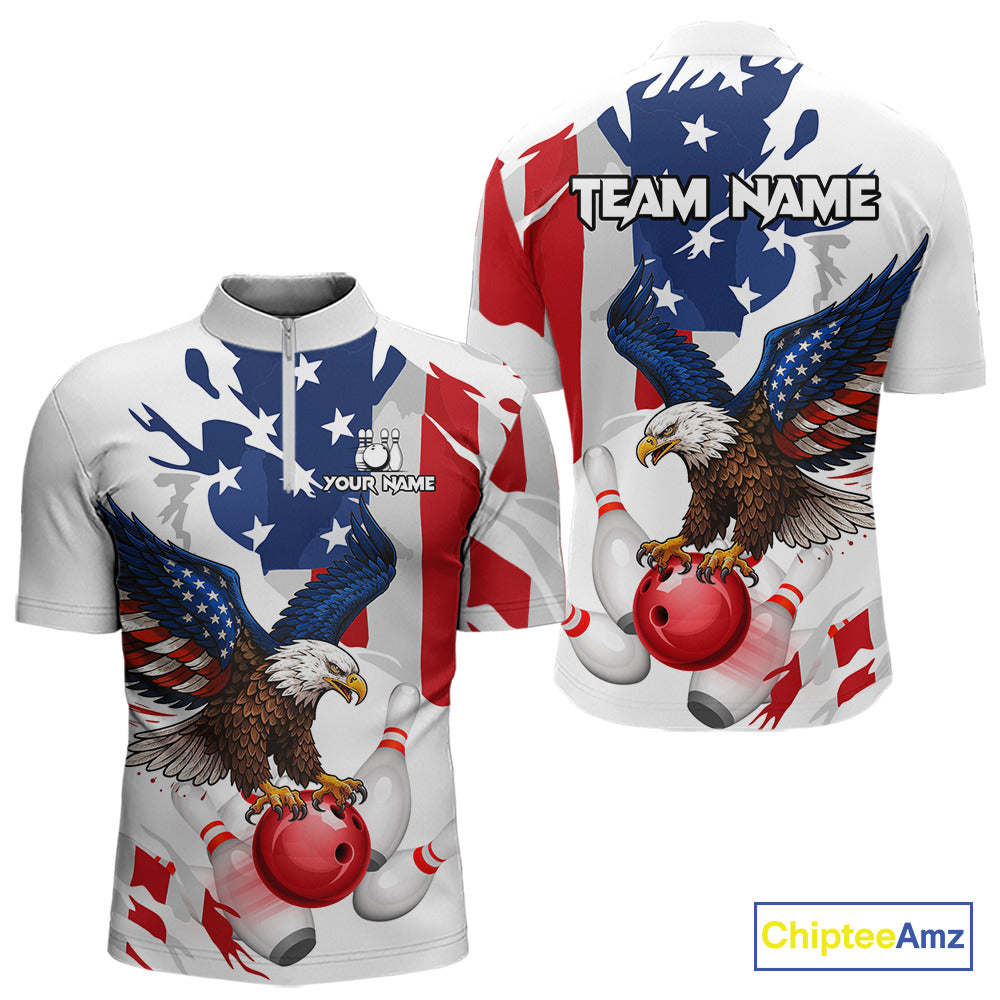 Red, White and Blue American Flag Eagle Bowling Shirts For Men Custom Patriotic Bowling Team Jerseys NQS10639
