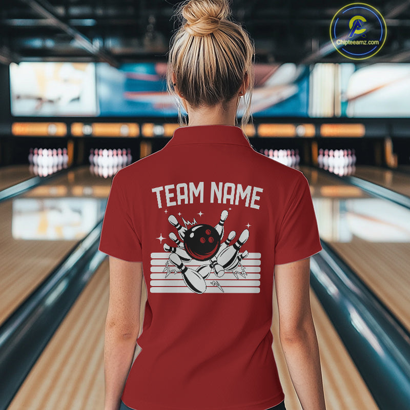 Retro Black and red stripe Bowling shirts For Women custom bowling team jerseys Bowler Outfits NQS11096