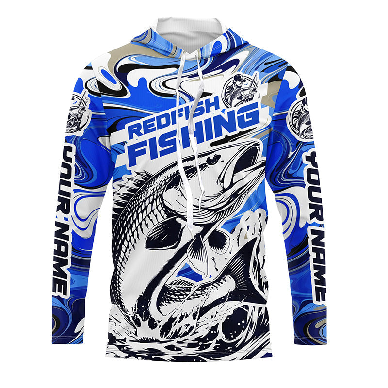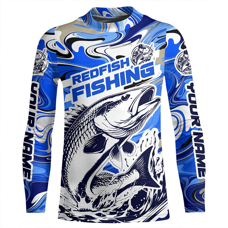 Redfish Fishing Custom Performance Long Sleeve Uv Shirts, Saltwater Camo Fishing Shirt | Blue IPHW6138