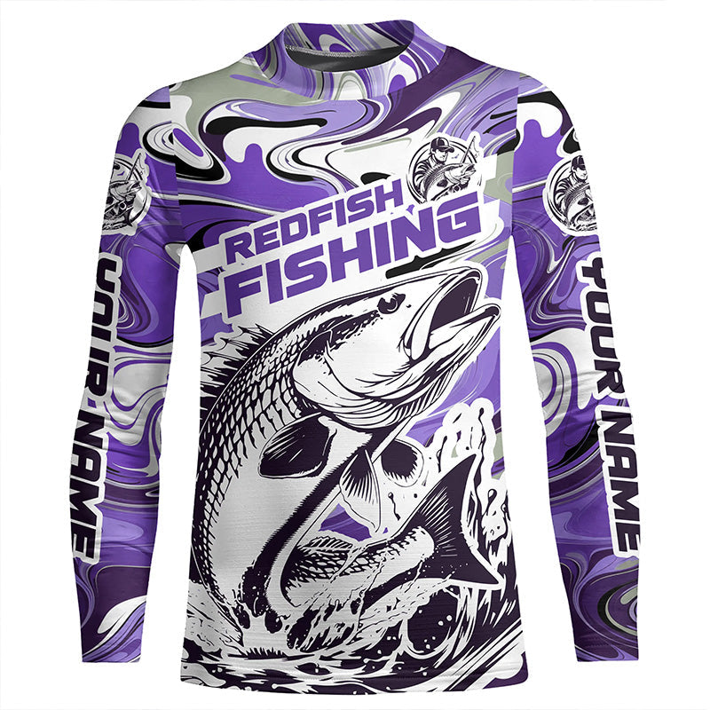 Redfish Fishing Custom Performance Long Sleeve Uv Shirts, Saltwater Camo Fishing Shirt | Purple IPHW6158