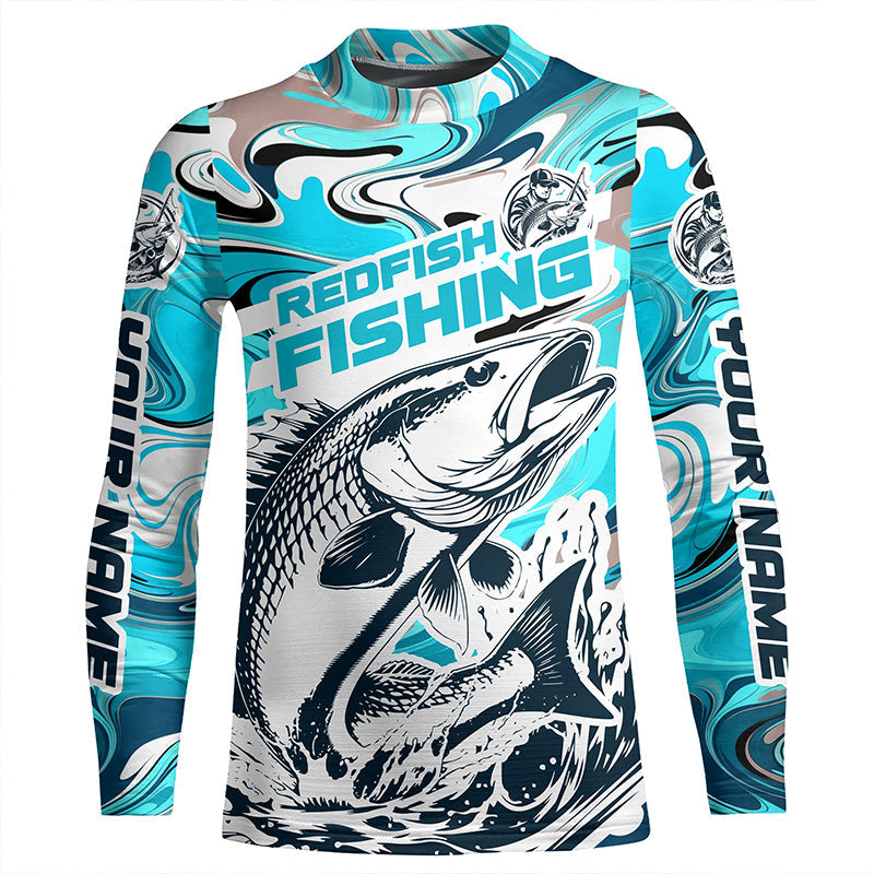 Redfish Fishing Custom Performance Long Sleeve Uv Shirts, Saltwater Camo Fishing Shirt | Teal Blue IPHW6160