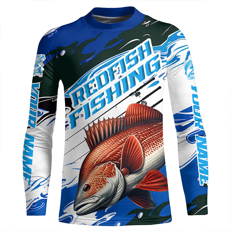 Custom Redfish Puppy Drum Long Sleeve Tournament Fishing Shirts, Redfish Fishing Jerseys | Blue Camo IPHW6231