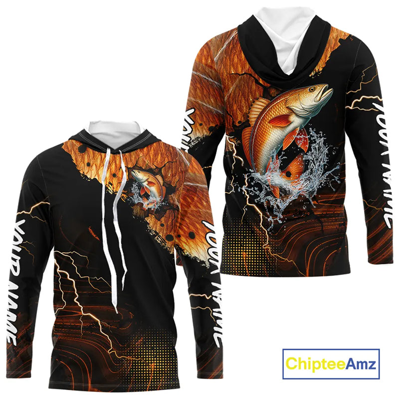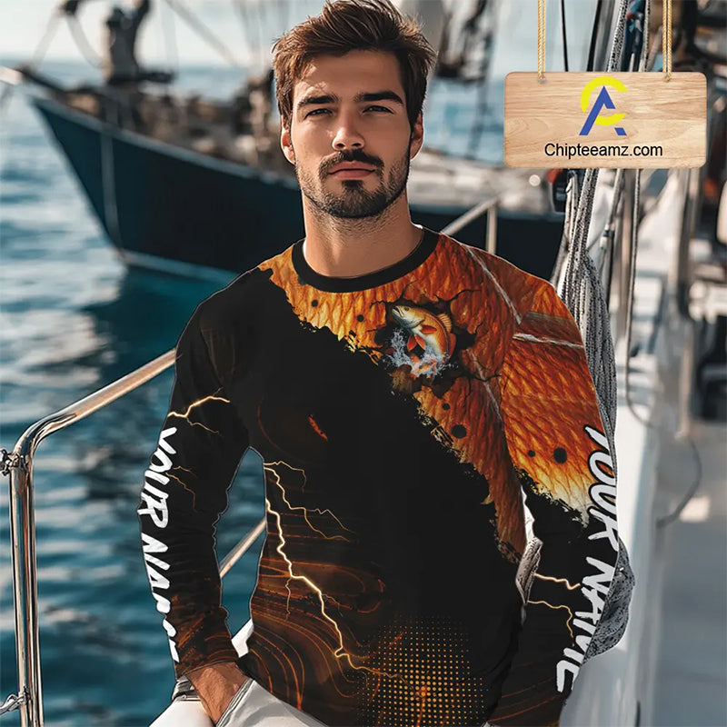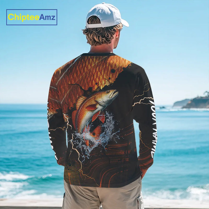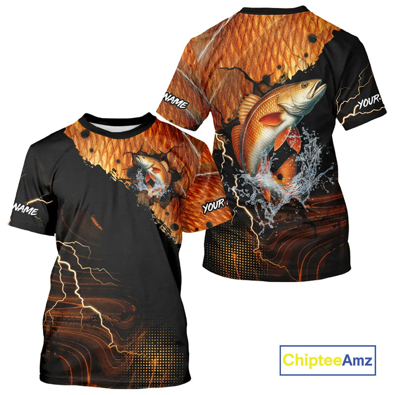 Personalized Redfish Fishing jerseys, Redfish scales lightning thunder tournament fishing shirts NQS11225