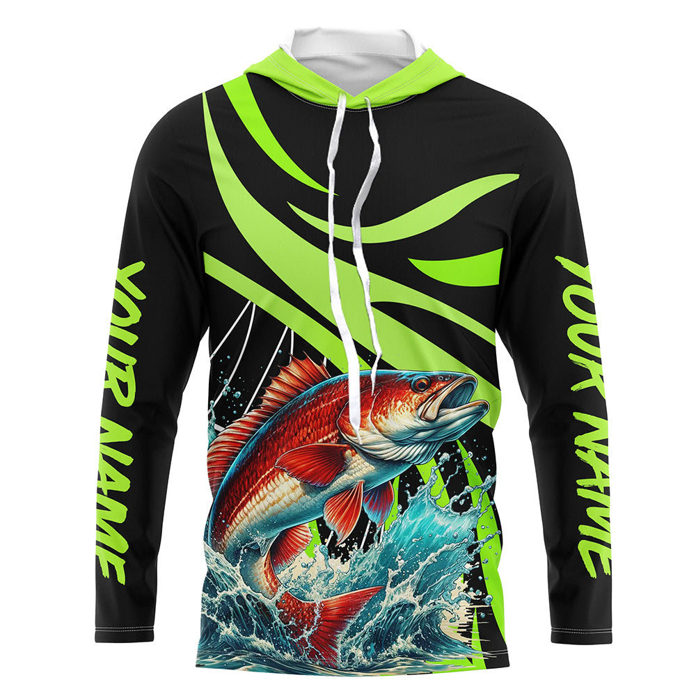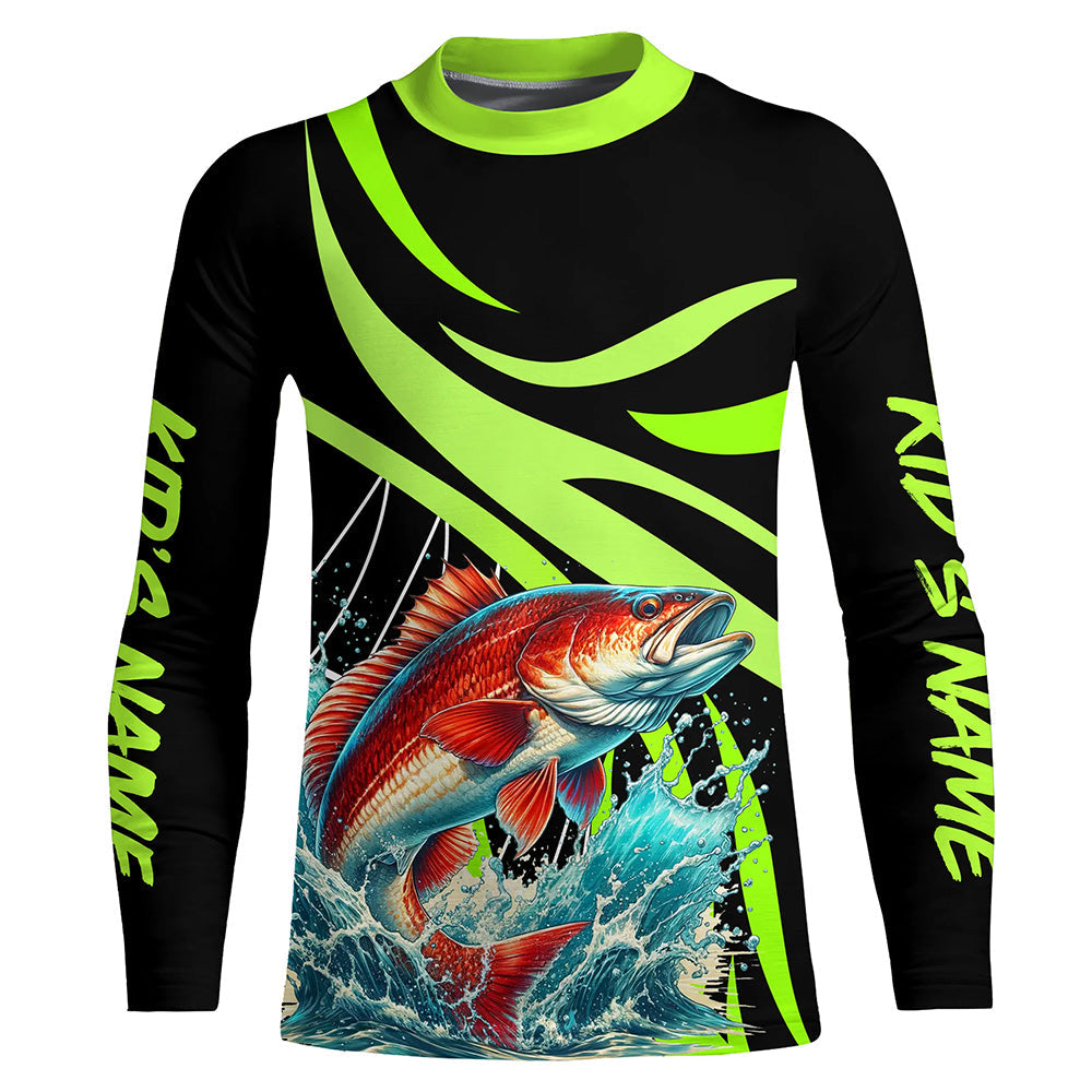 Personalized Redfish puppy Long Sleeve Fishing Shirts, Red drum Tournament Fishing Jerseys | Green NQS7425