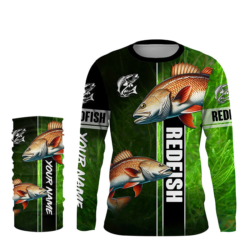 Redfish puppy drum Fishing green Customize Long Sleeve Fishing Shirts, fishing gifts for Fisherman NQS1727