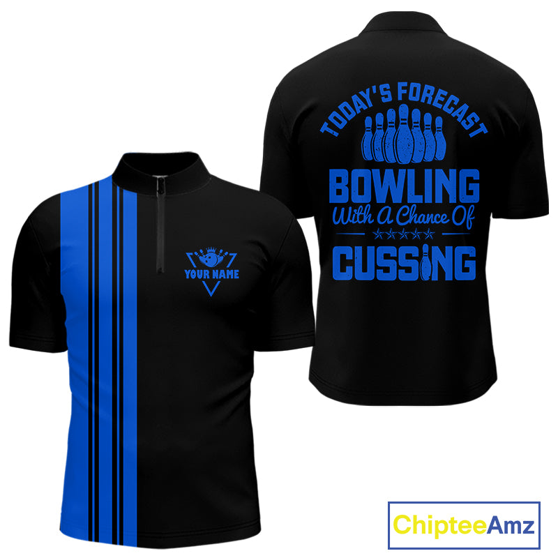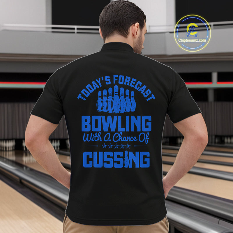 Black and Blue retro Bowling shirts for men custom Today's forecast bowling with a chance of cussing NQS10453