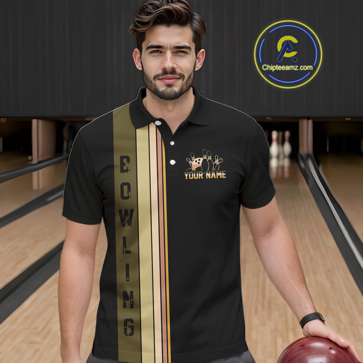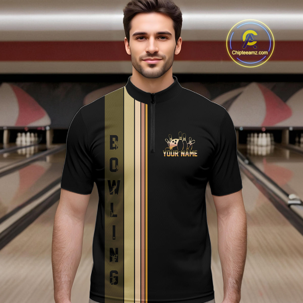 Black and Retro Bowling Polo, Quarter Zip Shirts for Men Custom Team Bowling League Jerseys NQS10745