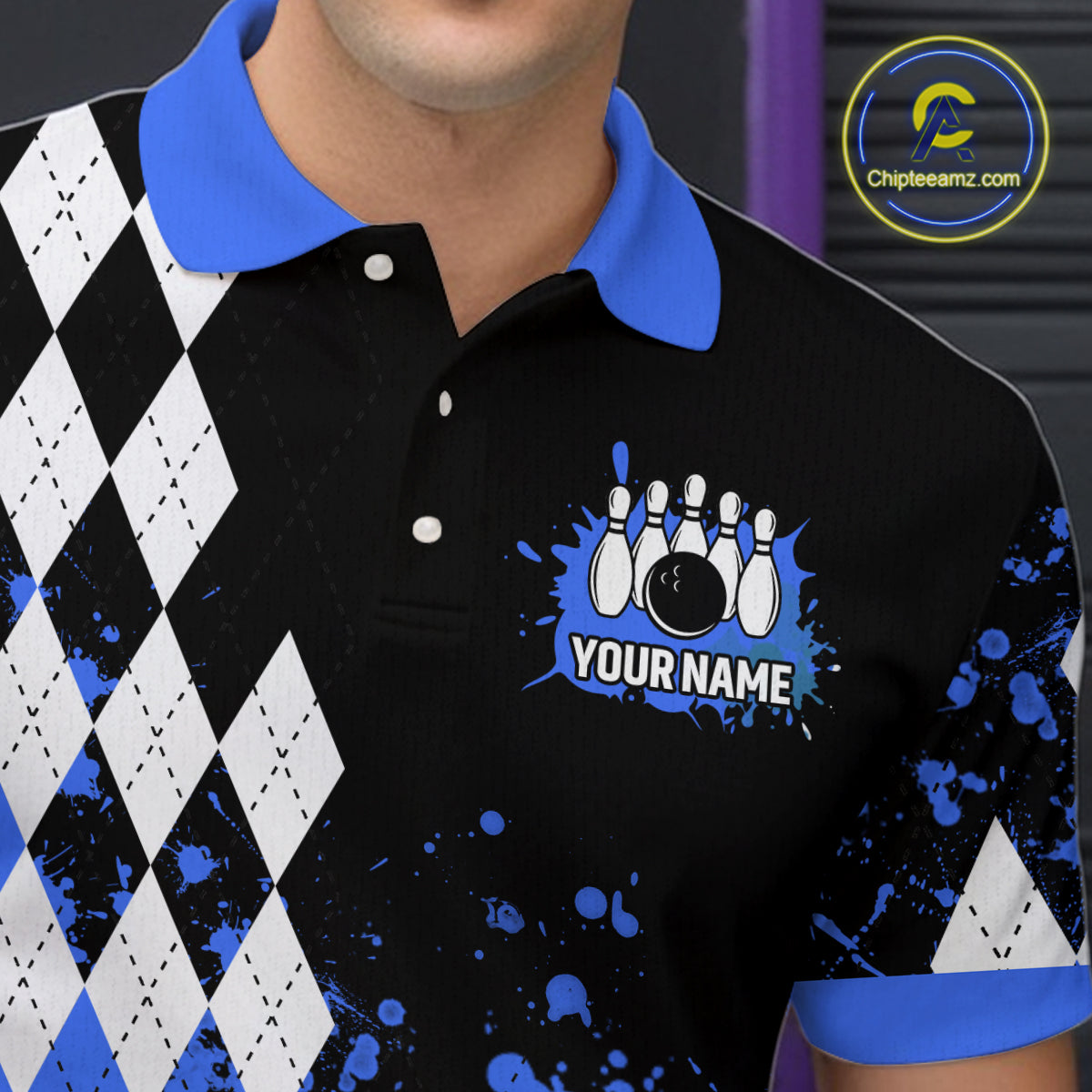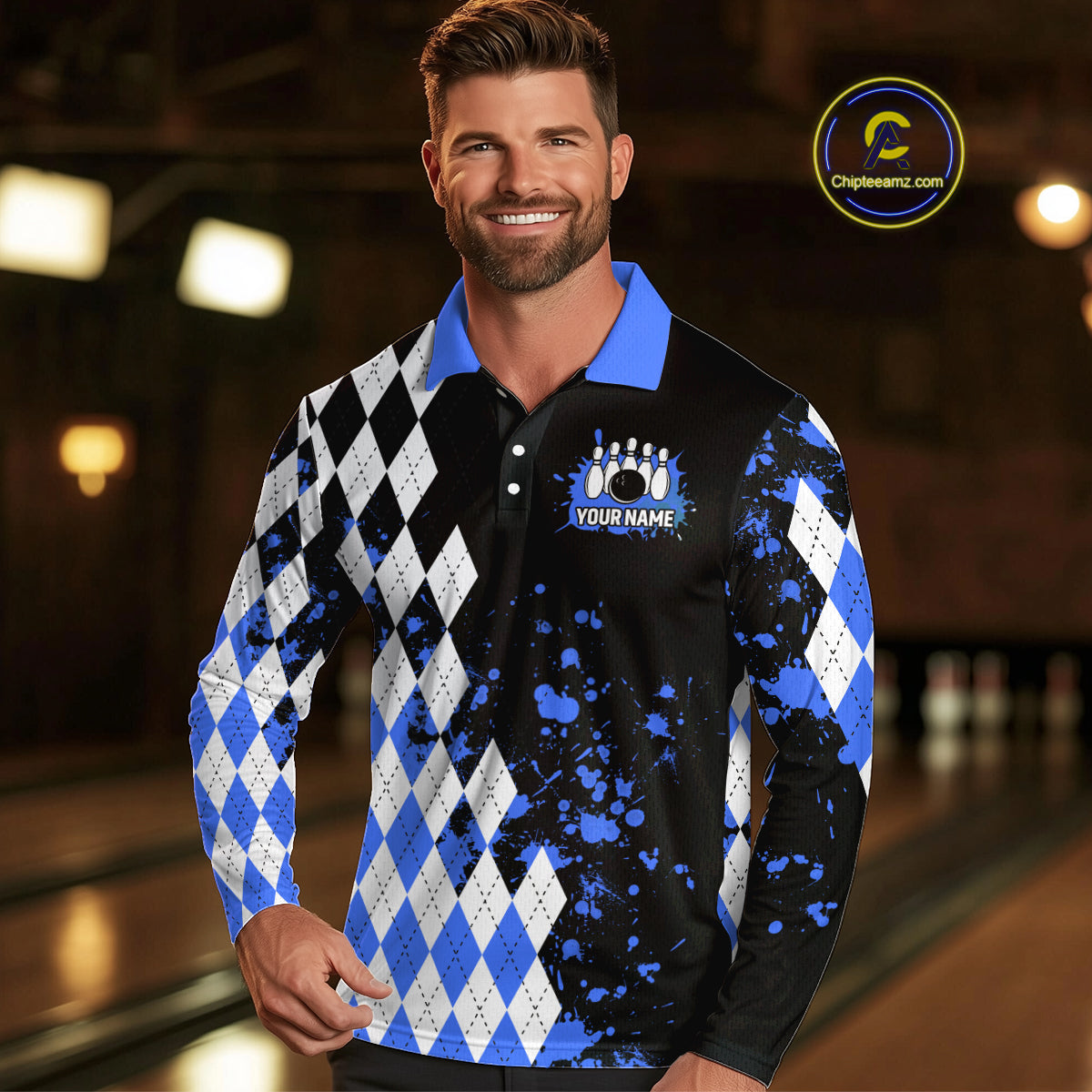 Blue argyle pattern Retro Bowling Shirts For Men Custom My drinking team has a bowling problem NQS9824