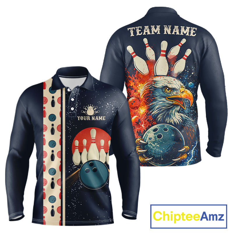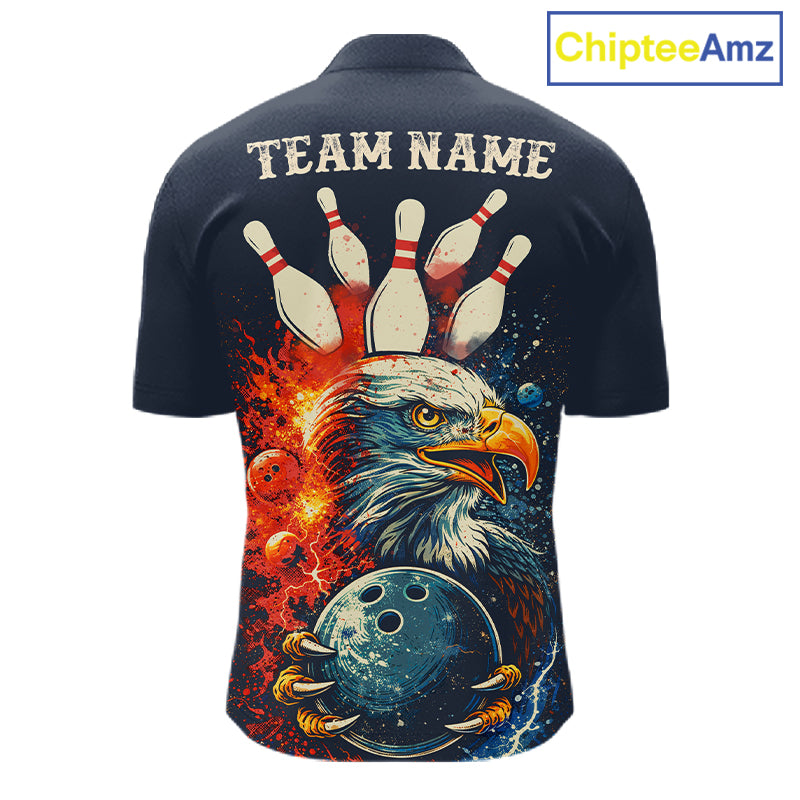Custom Red, white and blue Eagle Retro Bowling Polo, 1/4 zip Shirts For Men, Bowling Team jerseys NQS11666