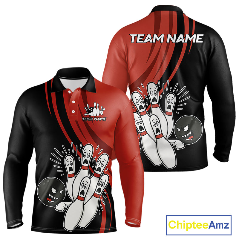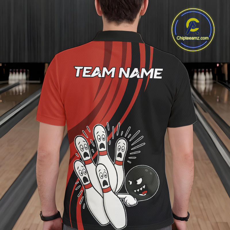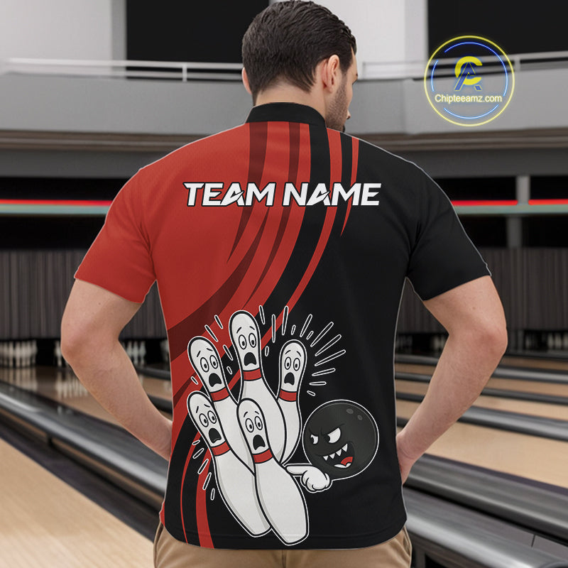 Funny Bowling ball and pins Black and Red Bowling Team Shirts For Men Custom Retro Bowling Jerseys NQS10225