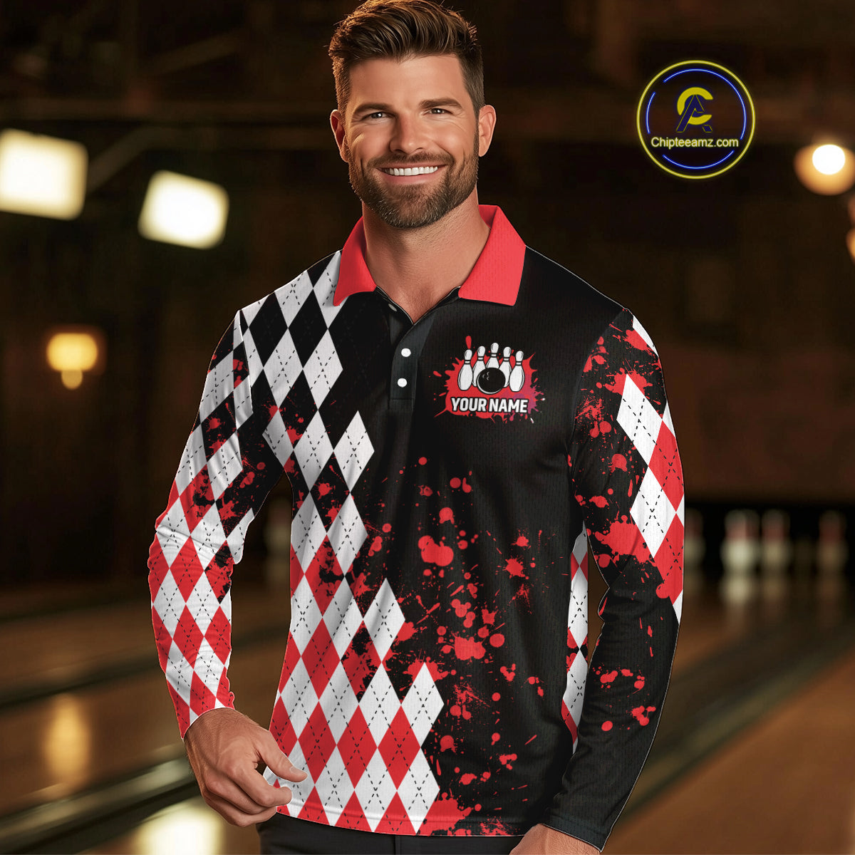 Red argyle pattern Retro Bowling Shirts For Men Custom My drinking team has a bowling problem NQS9825