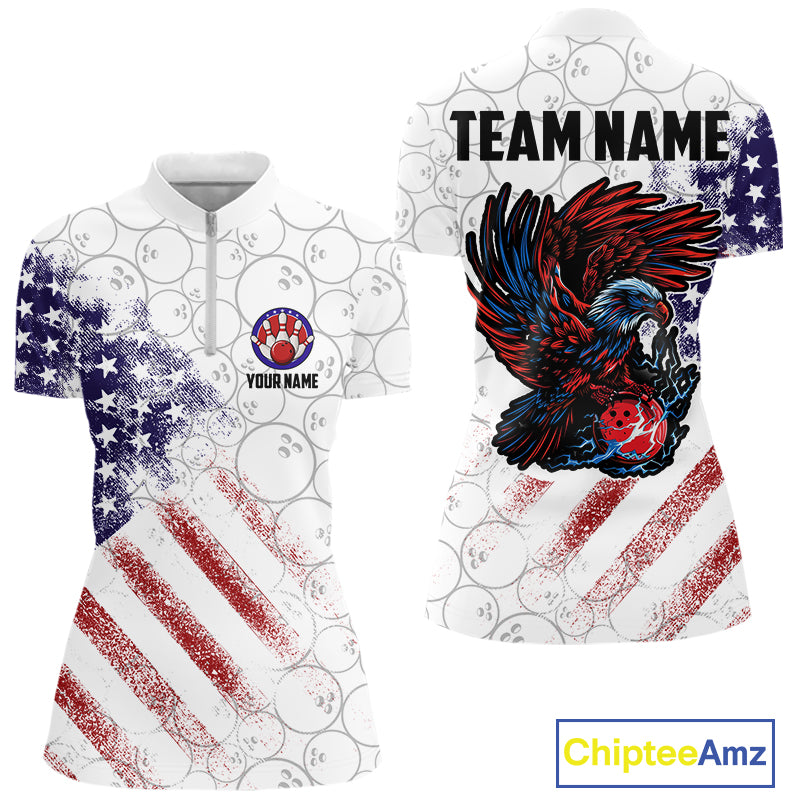 Retro American Flag white camo Eagle Bowling Shirt for Women Custom Patriotic Bowling Team Jersey NQS9819