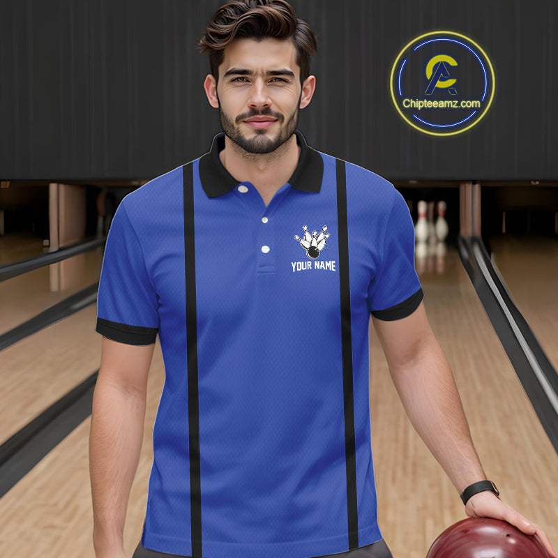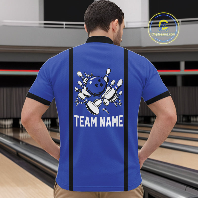 Retro Bowling Polo, Quarter Zip shirts For Men custom bowling team shirts Bowler Outfits | Blue NQS10546