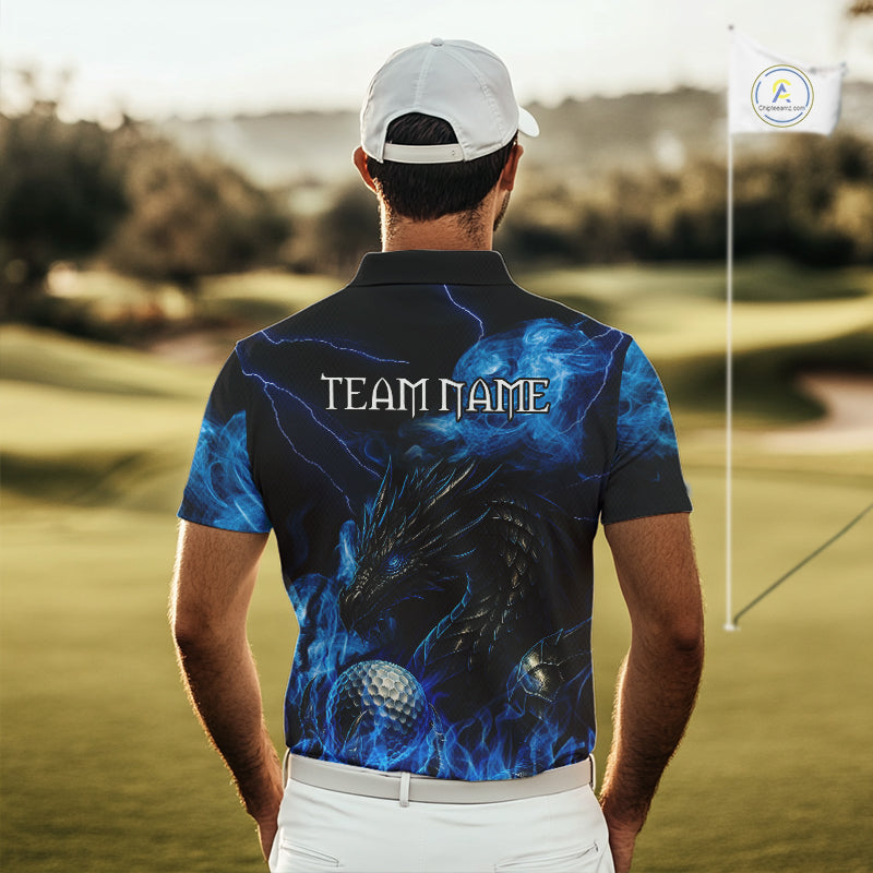 Blue Flame Dragon Golf polo shirts For Men Custom Dragon team mens golf outfits, gift for golf lover NQS10024