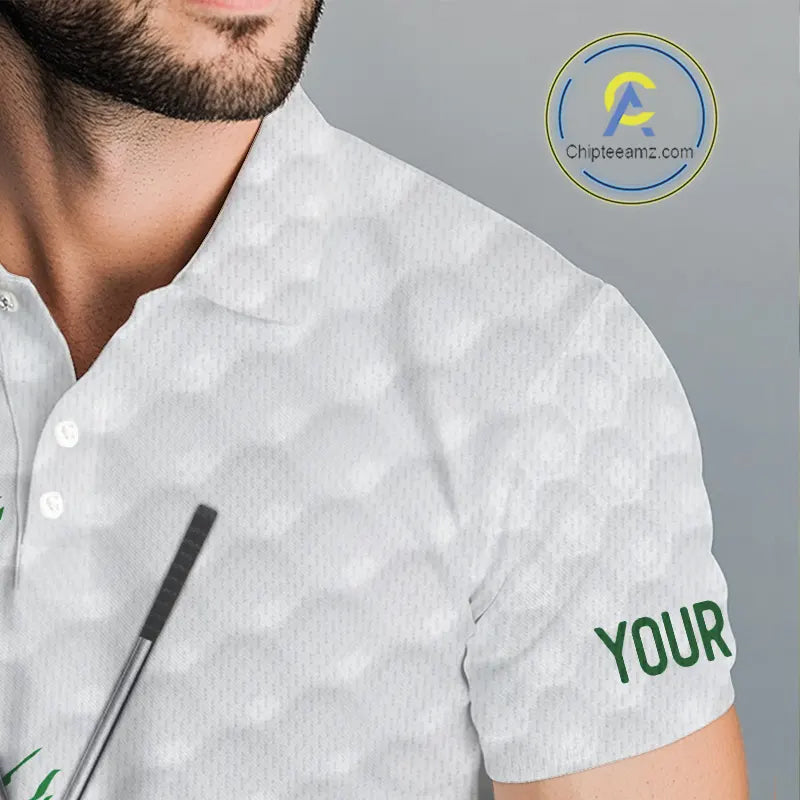 Green clover pattern St Patrick's day custom white Mens golf polo shirts, team mens golf tops NQS11421