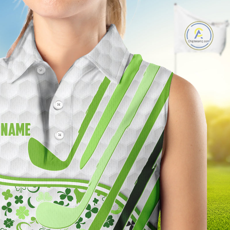 Personalized Funny Golf beer Green clover pattern golf clubs St Patrick's Day Sleeveless polo shirt NQS11144