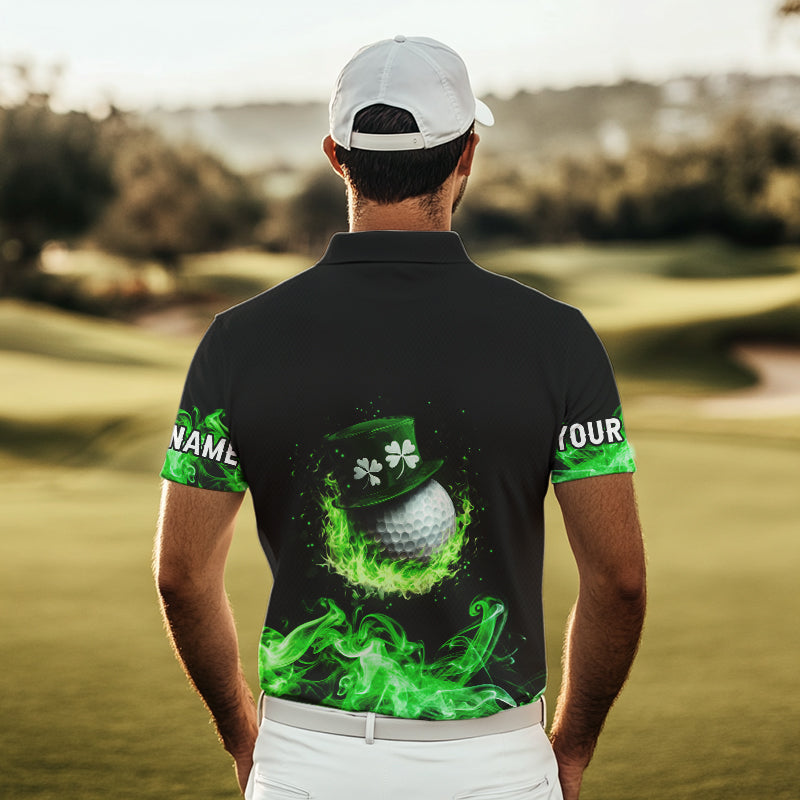 Personalized Green Flame Smoke Lucky clover golf polo shirts for men custom St Patrick Day golf shirts NQS9450