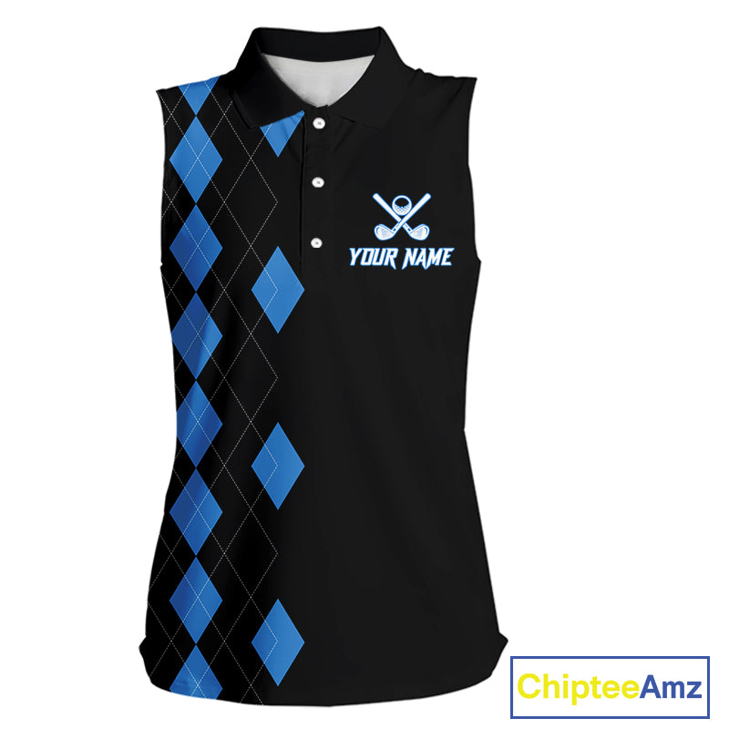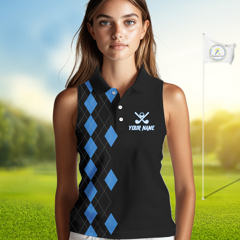 Black and Blue argyle polo shirts personalized ladies sleeveless golf tops, team golf outfit NQS11403