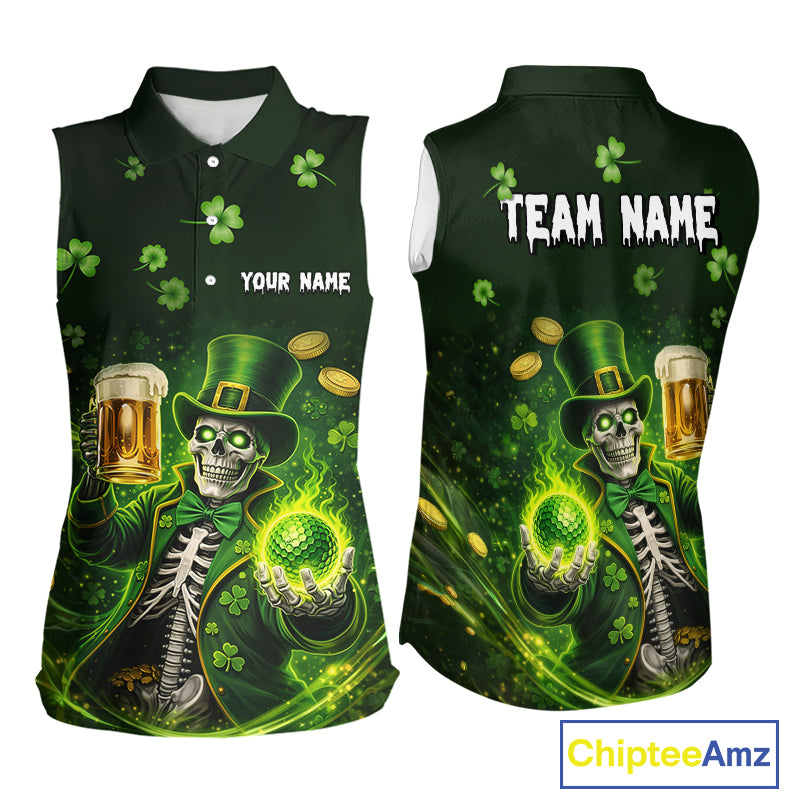 Funny Skull drink beer St Patrick's Day Green shamrock Custom ladies sleeveless golf tops NQS11411