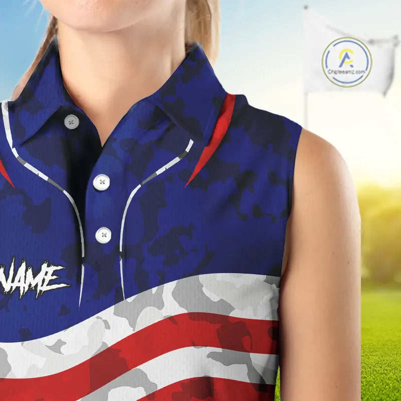 USA flag camo golf outfits funny skull ladies sleeveless golf tops custom patriotic golf shirt ladies NQS11400