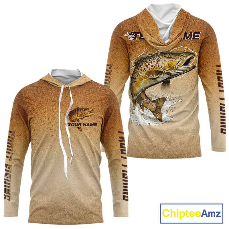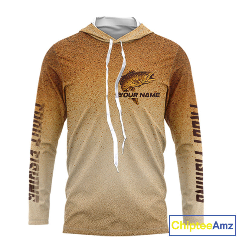 Brown Trout Fish Skin Long Sleeve Hooded Fishing Shirts Custom Name, Trout Fishing Shirts NBT402