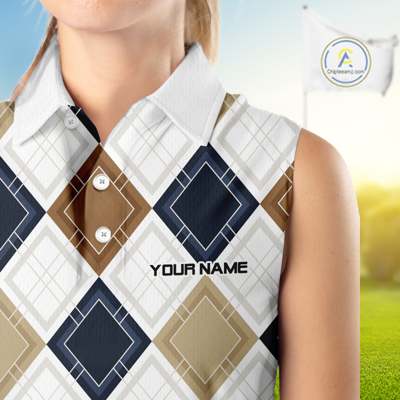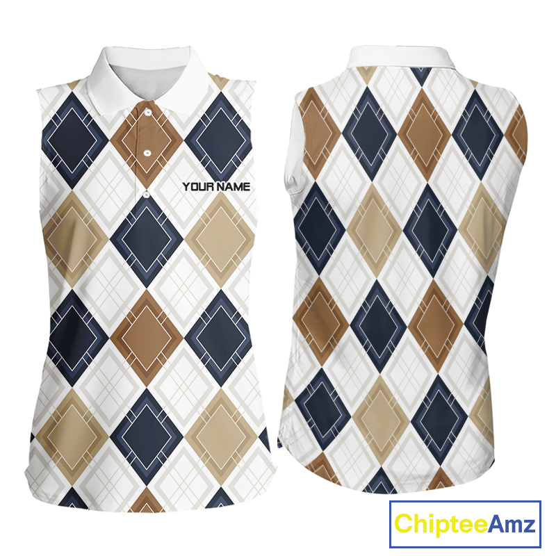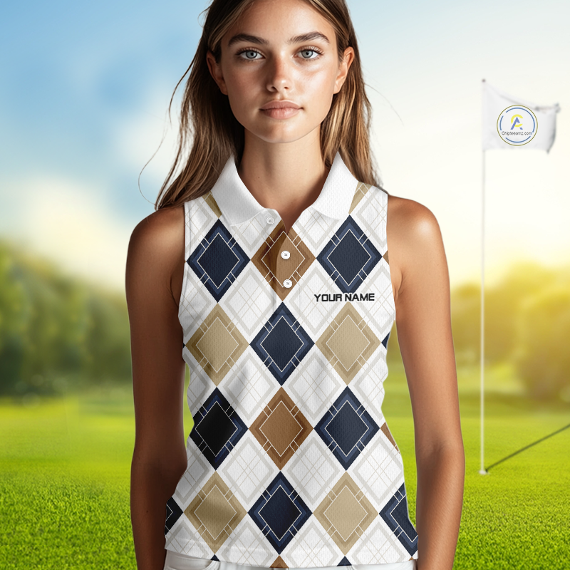 Plaid Womens Sleeveless Golf Polo Shirt Custom Retro Argyle Pattern Team Golf Tops, Vintage Golf Gift NHN0216