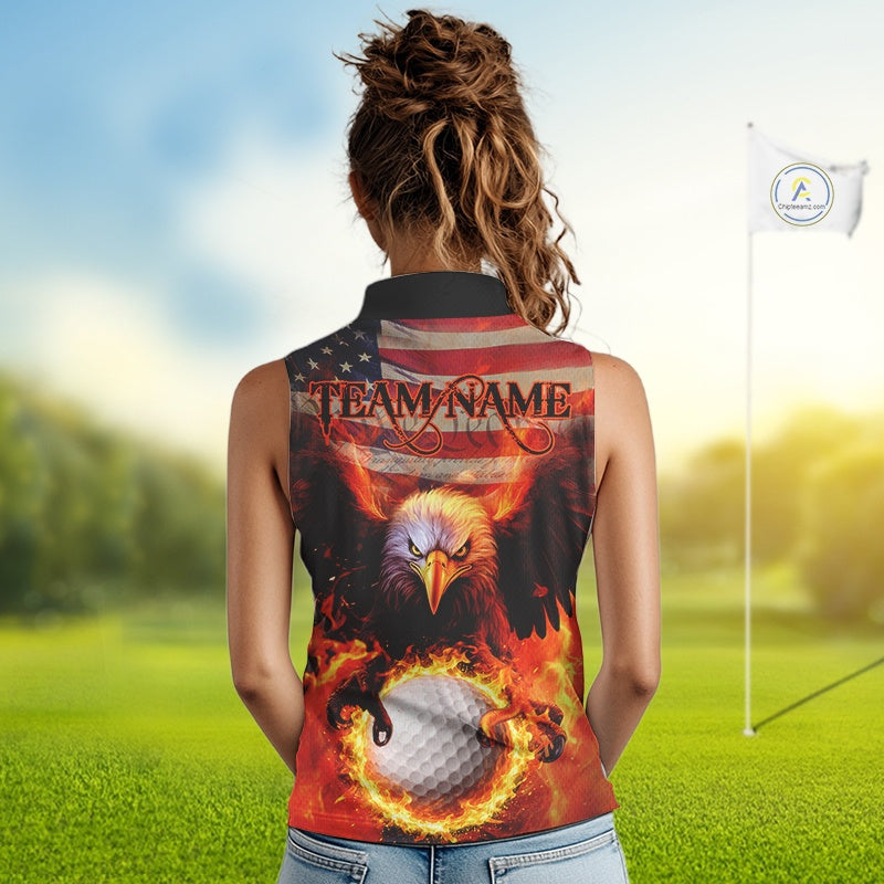 Custom Patriotic Eagle We The People Flame Golf Shirt For Women, Vintage US Flag Golf Shirt IPHW10599