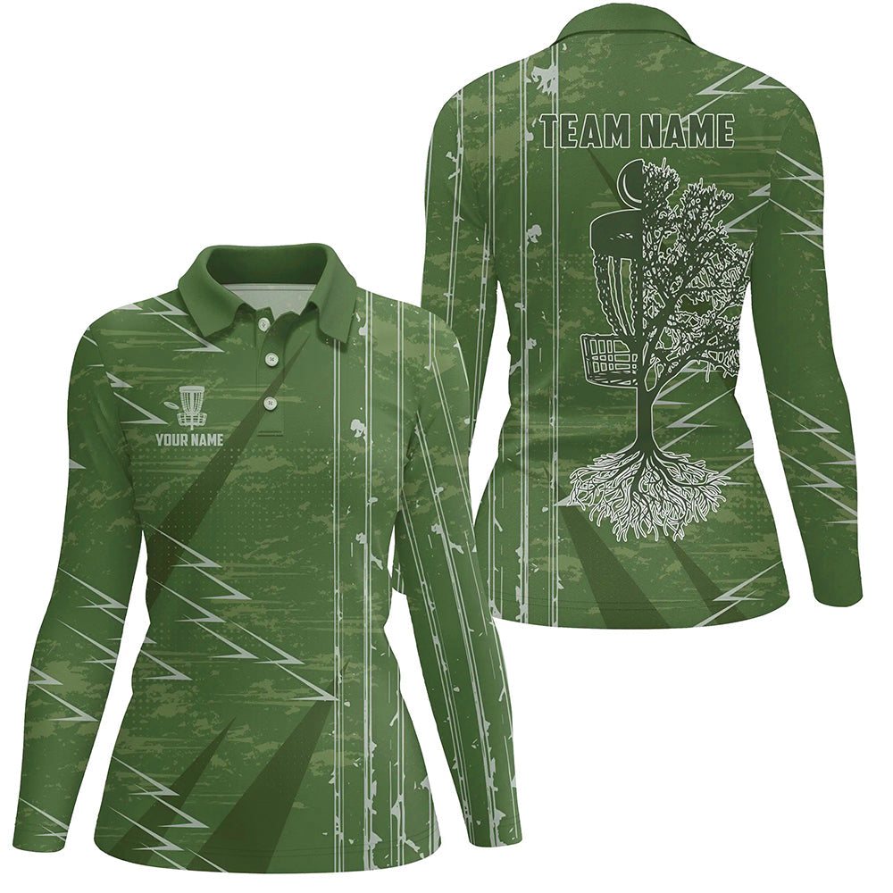 Womens disc golf polo shirts custom green vintage team disc golf jersey, disc golf outfit NQS6942