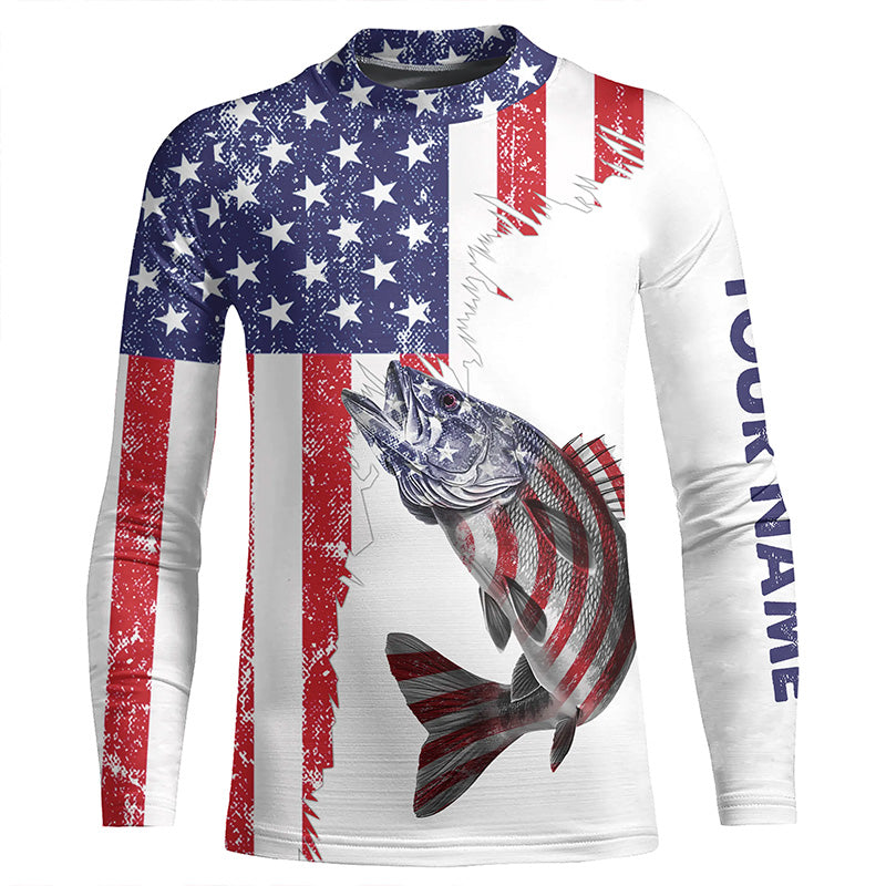 American flag Walleye patriotic fishing Custom Walleye tournament long sleeves fishing shirts NQS5864