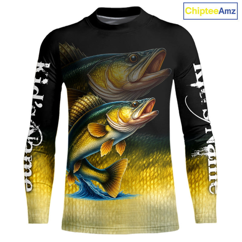 Walleye fishing scales Custom name sun protection personalized fishing gifts, Walleye fishing jerseys NQS10651