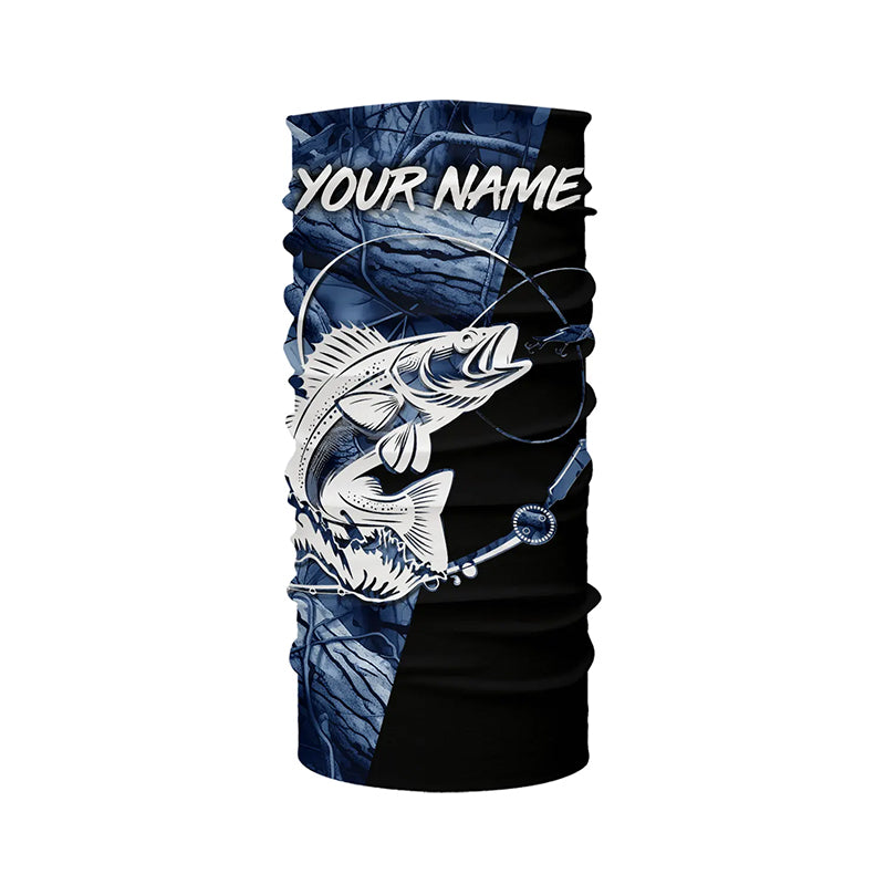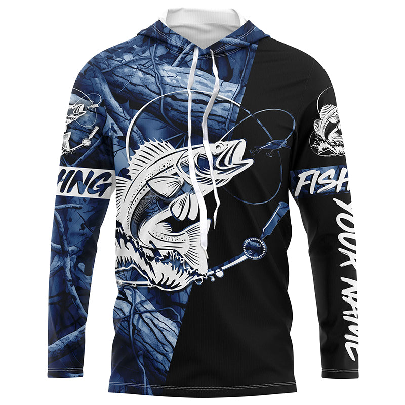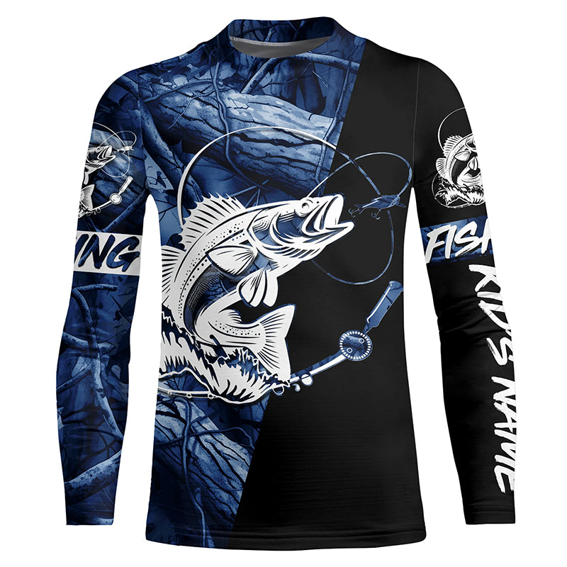 Walleye fishing tattoo blue camo Custom long sleeves fishing shirts, walleye jerseys black version NQS4230