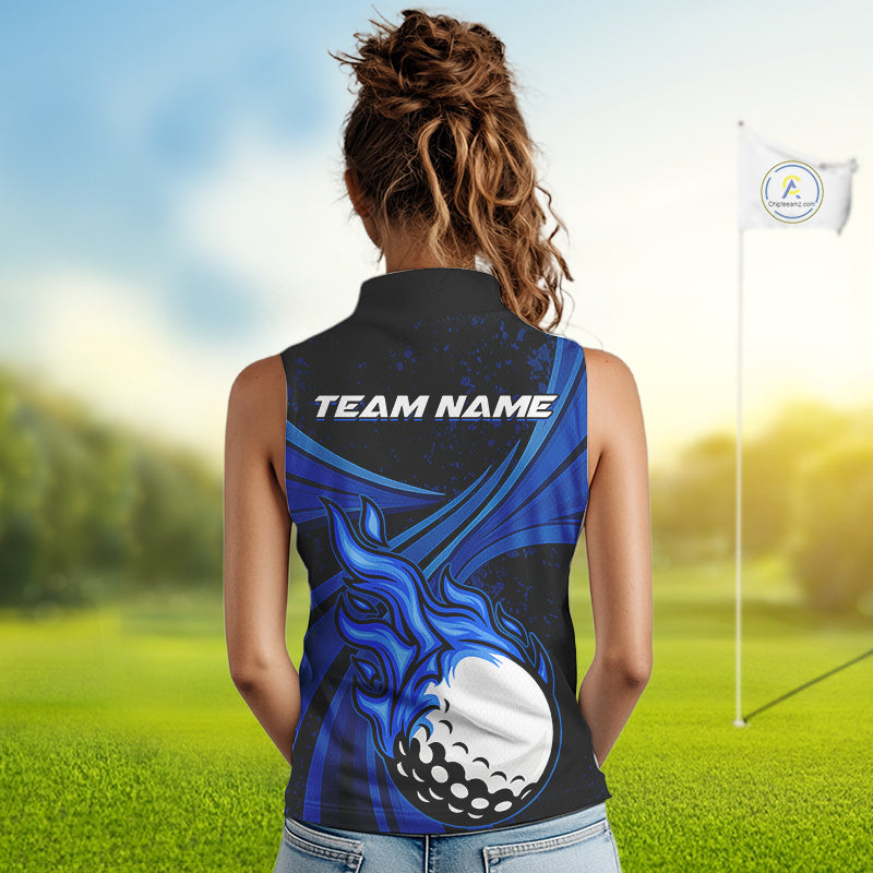 Black & Blue Golf ball Flame Women Sleeveless Polo Shirt Custom ladies golf clothing, best golf gift NQS10864