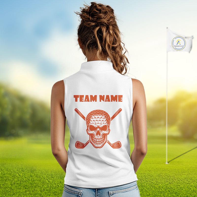 Orange argyle plaid pattern Skull White Sleeveless polo shirt custom Halloween ladies golf attire NQS10357