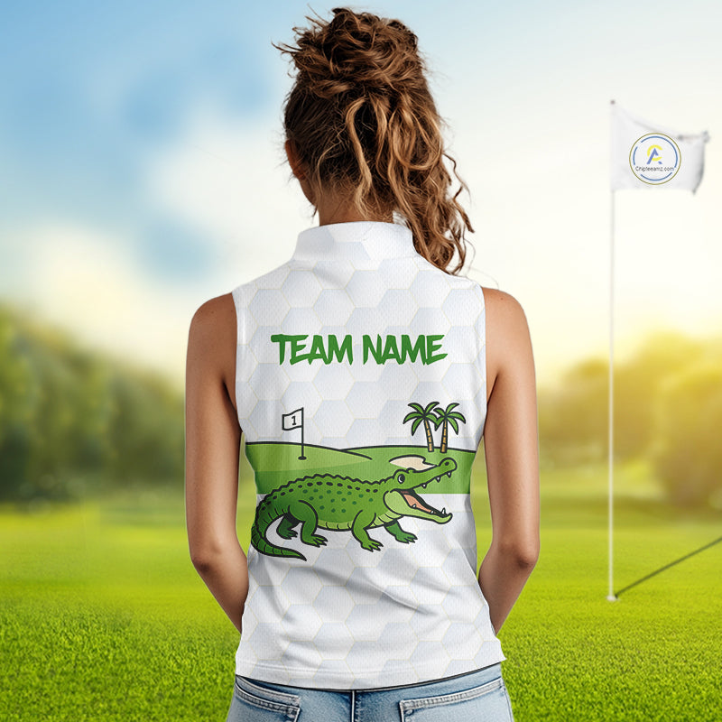White and Green Funny Alligator Sleeveless Golf Polo Shirt custom ladies golf outfit, golfing gifts NQS10886
