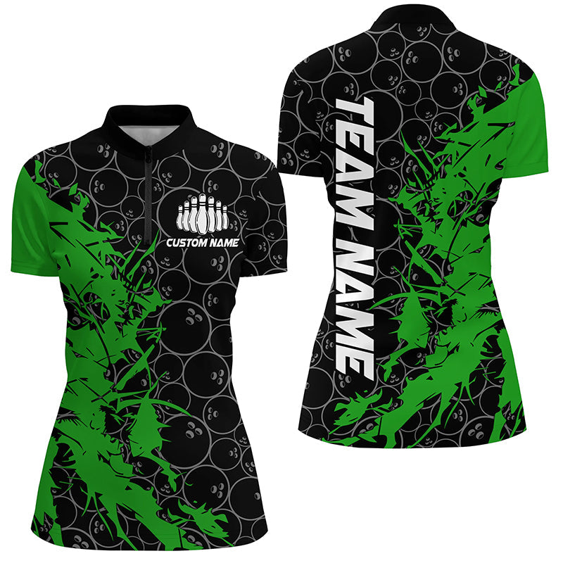 Black And Green Customized Bowling Shirts For Women, Bowling Jerseys Team Bowling Shirts IPHW6983
