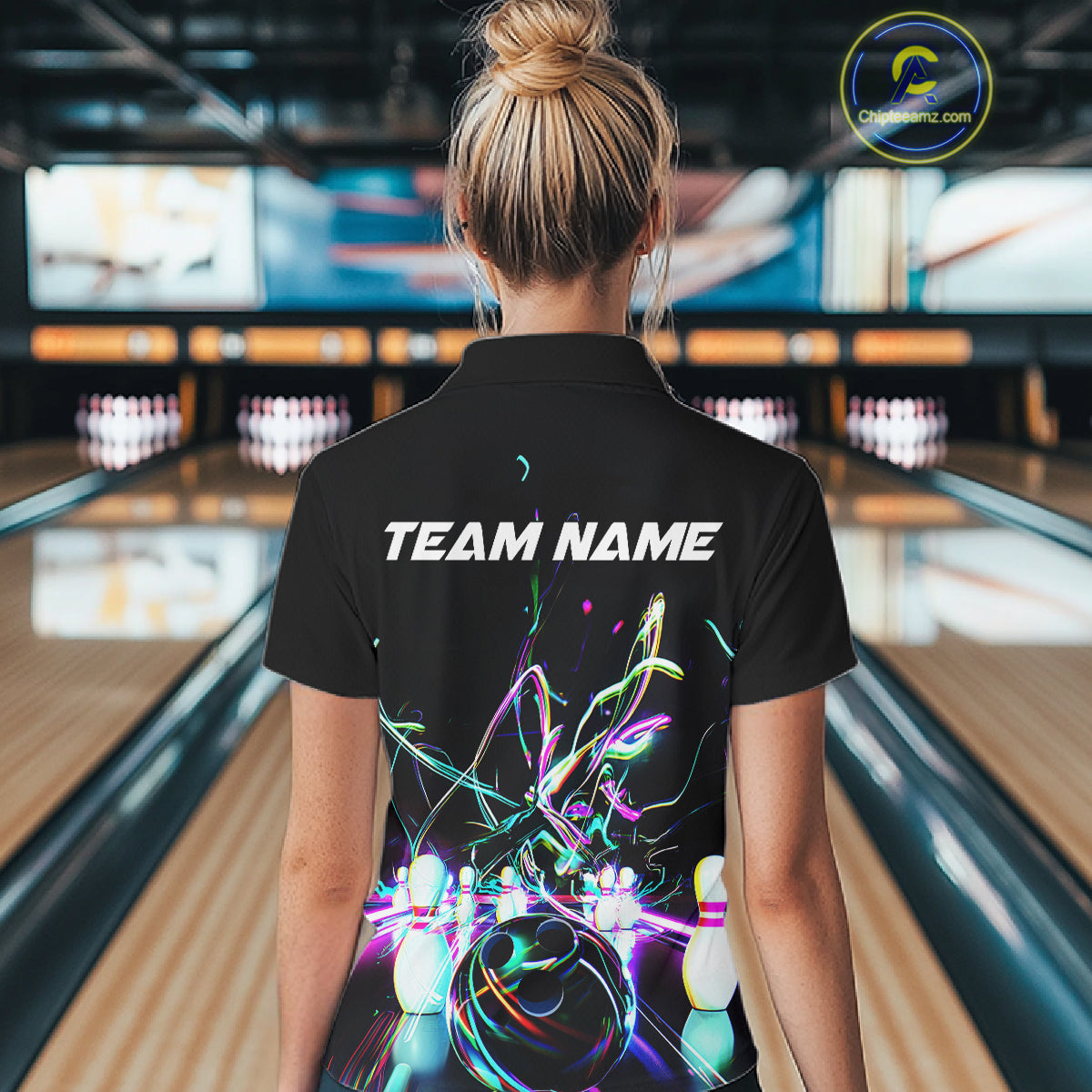 Neon Style Custom Ladies Bowling Shirts, Glowing Electric Bowling Team Shirt Bowler Outfits IPHW8001